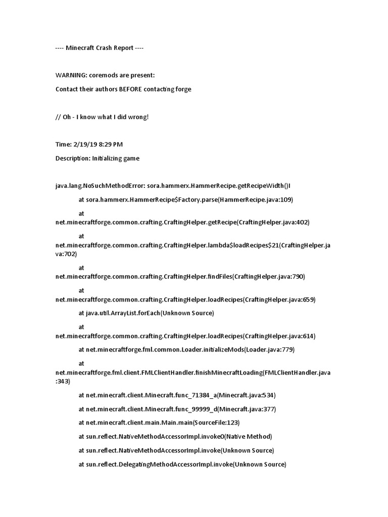 There are hundreds of different reasons that your server may crash, it can be from a world issue, server jar, mods, and far more. These crash reports break down why the server crashes and can help you get a better understanding of what's wrong and how to fix it. What happens is it will open up and proceed to do a deep scan of my mods. More images for minecraft mod crash report » To read the crash report, click the "edit" link to the right of the file. This is the crash report i recived, im using jei and this mod and it keeps crashing. Looking inside of that directory you will notice a file or multiple files. Then it will pick a new one. Why does minecraft keep crashing after mods are installed? If you can narrow down it's a world issue, you can google the error line to see if there are any solutions or you can restore a backup. Also, with vanillafix installed, minecraft will no longer fully crash, but rather kick you out to the main menu and offer to upload your report to a paste site so that. Then it will stop at a random one. Where to find the crash reports 1.